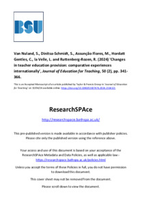 Van Nuland, S, Dinitsa-Schmidt, S, Assunção Flores, M, Hordatt Gentles, C, la Velle, L and Ruttenberg-Rozen, R (2024) 'Changes in teacher education provision: comparative experiences internationally.' Journal of Education for Teaching, 50 (2). pp. 341-366.