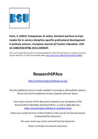 'Comparison of online, blended and face-to-face modes for in-service discipline-specific professional development in primary science.'