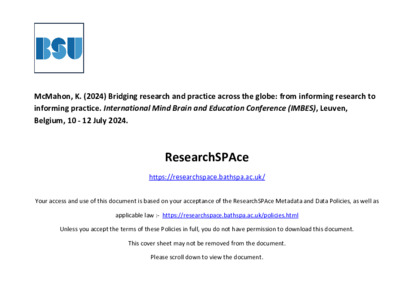 In: International Mind Brain and Education Conference (IMBES), 10 - 12 July 2024, Leuven, Belgium.