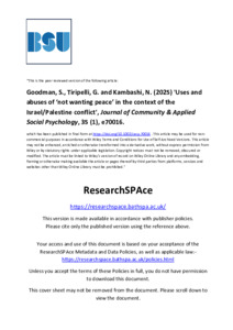 Goodman, S, Tiripelli, G and Kambashi, N (2025) 'Uses and abuses of ‘not wanting peace’ in the context of the Israel/Palestine conflict.' Journal of Community & Applied Social Psychology, 35 (1). e70016.