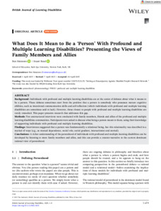 Simmons, B and Read, S (2025) 'What does it mean to be a ‘person’ with profound and multiple learning disabilities? Presenting the views of family members and allies.' British Journal of Learning Disabilities, 53 (3). pp. 457-465.