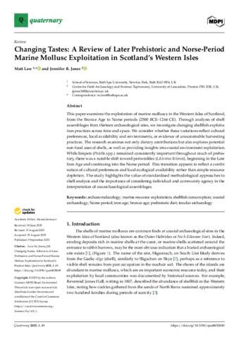 'Changing tastes: a review of later prehistoric and Norse-period marine mollusc exploitation in Scotland’s Western Isles.'