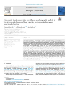Schneider, R, Muntifering, J and Sullivan, S (2025) 'Community-based conservation surveillance: an ethnographic analysis of the drivers and obstacles of local reporting on rhino and plains game poaching in Namibia.' Biological Conservation, 311. e111396.