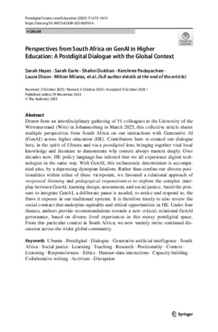 'Perspectives from South Africa on GenAI in higher education: a postdigital dialogue with the global context.'