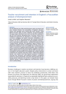 | Keywords: | teacher recruitment, teacher retention, Foucault, England, teacher education |