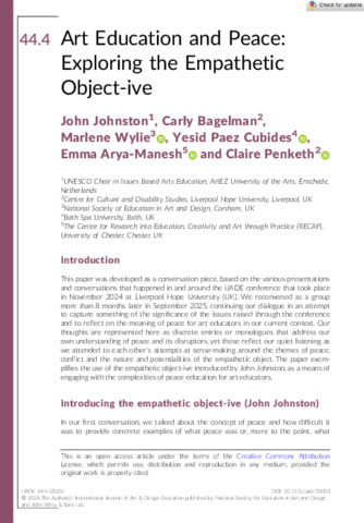 'Art education and peace: exploring the empathetic object‐ive.'