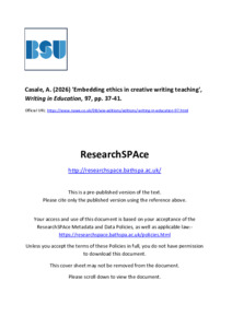 Casale, A (2026) 'Embedding ethics in creative writing teaching.' Writing in Education, 97. pp. 37-41.
