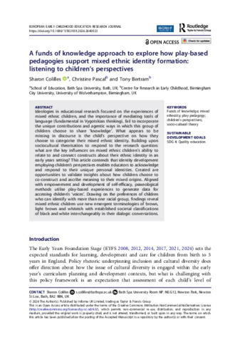 'A funds of knowledge approach to explore how play-based pedagogies support mixed ethnic identity formation: listening to children’s perspectives.'
