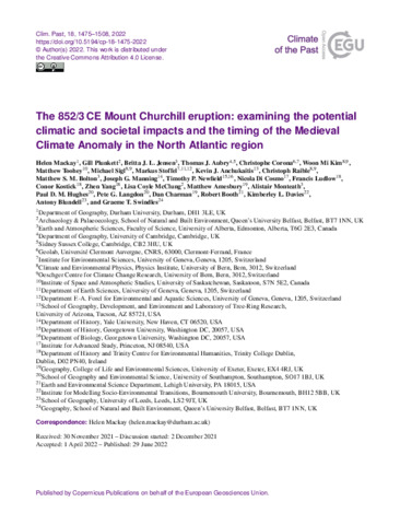 Mackay, H et al (2022) 'The 852/3 CE Mount Churchill eruption: examining the potential climatic and societal impacts and the timing of the Medieval Climate Anomaly in the North Atlantic region.' Climate of the Past, 18. pp. 1475-1508.