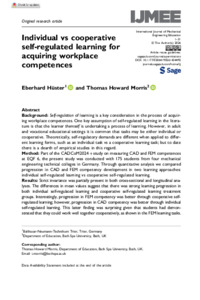 'Individual vs cooperative self-regulated learning for acquiring workplace competences.'